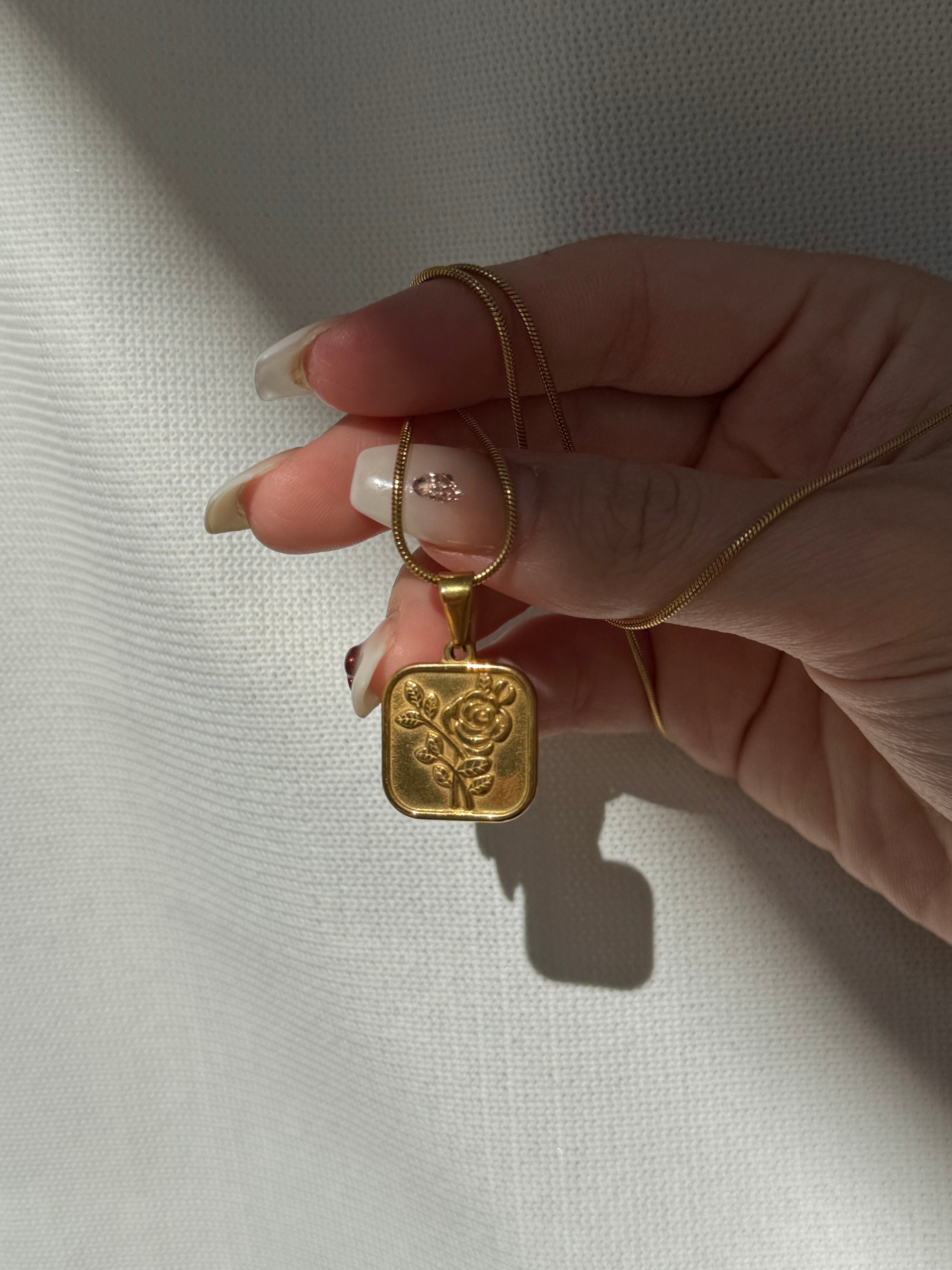 ローズが入っているスクエア型のチャームネックレスです♡