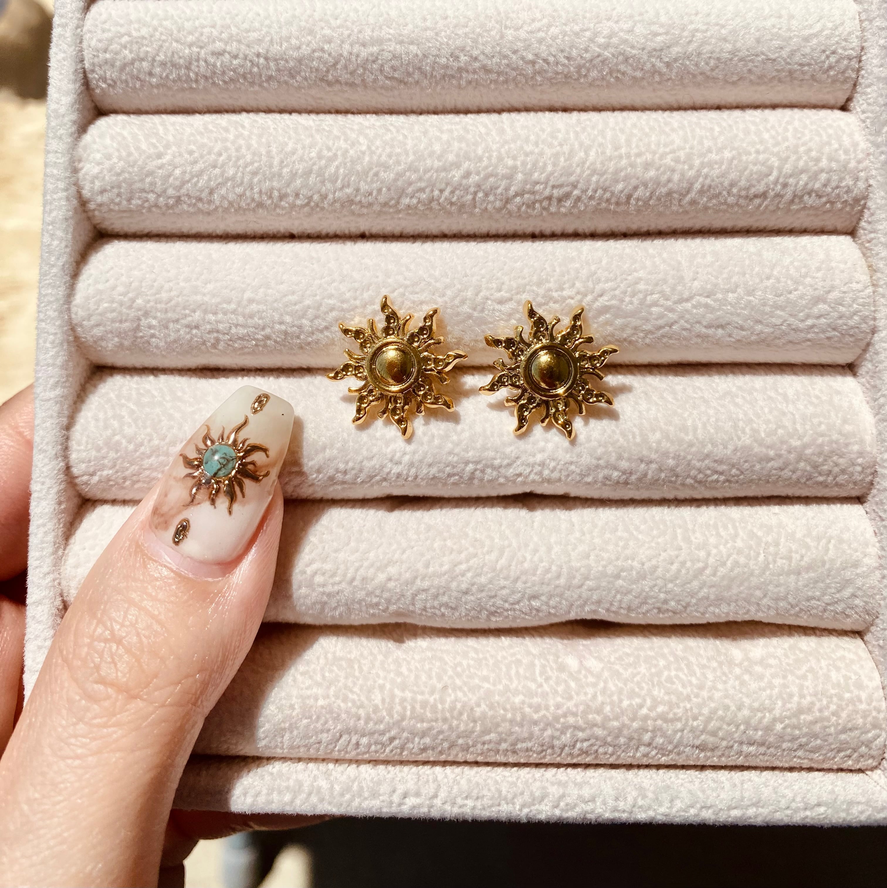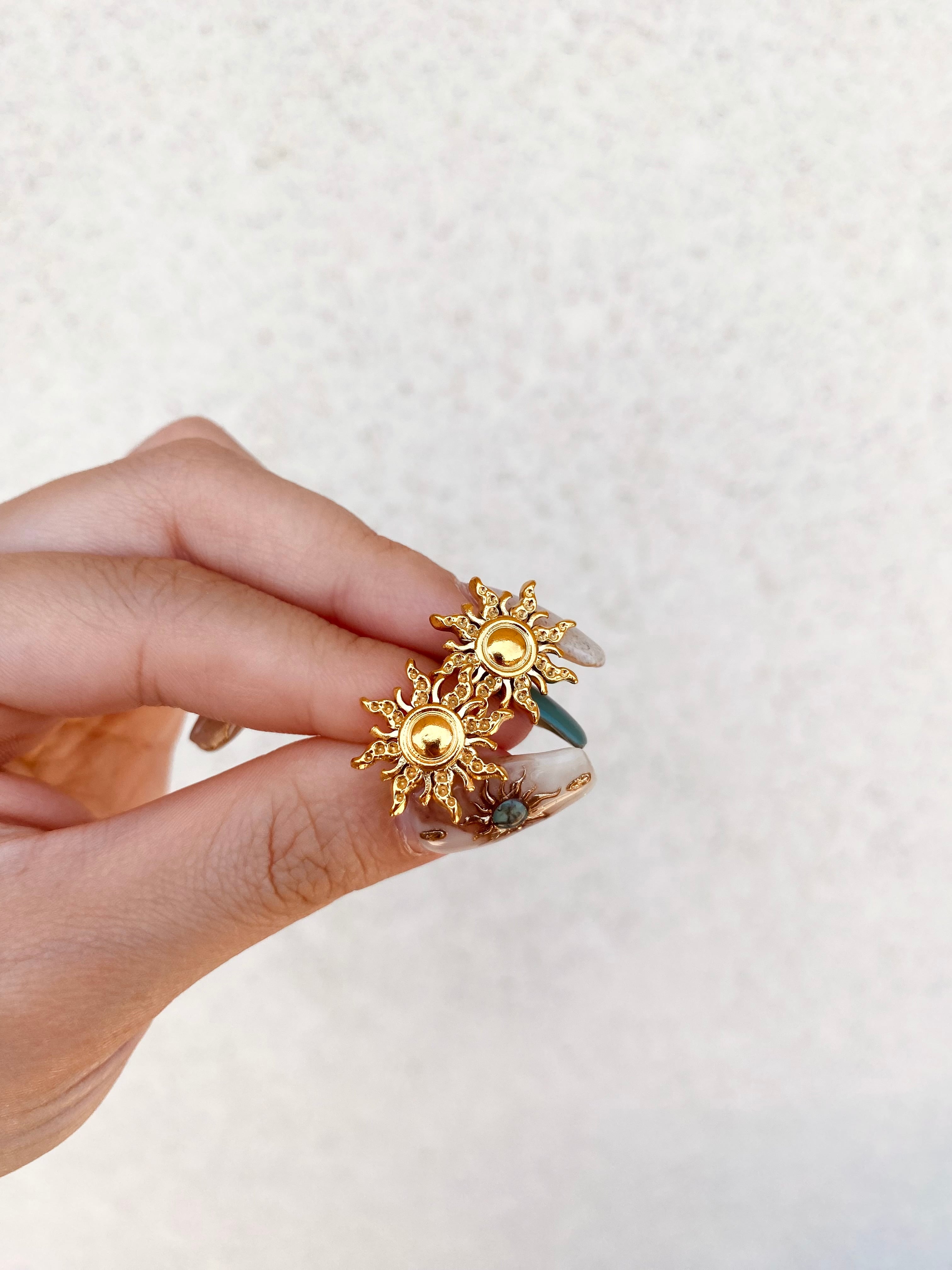 #25の商品の少しデザインがある太陽モチーフのピアスです。